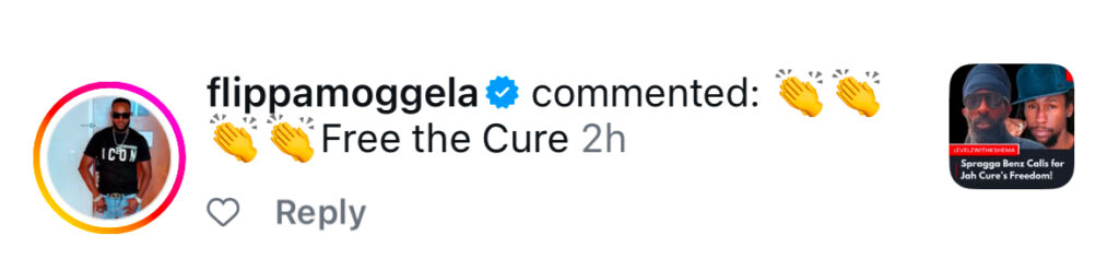 On Instagram Flippa wrote, “Free the Cure” under a post shared by Levelz with Kshema.